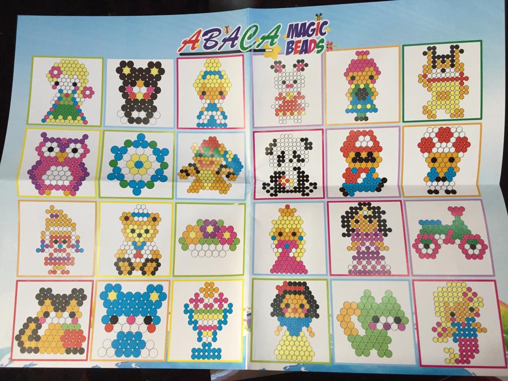 Ada 24 gambar pola desain yang bisa "dicontek" polanya. Dan ada lebih dari 1500 manik2 shg puas memainkannya. Dan permainan ini benar2 melatih fokus, kesabaran serta konsentrasi.