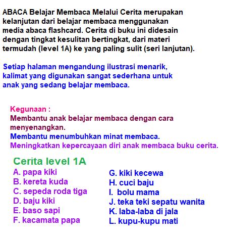 Buku ABACA merupakan lanjutan dari abaca flashcard seri 1, 2 dan 3. Anak2 yang telah belajar membaca menggunakan abaca, dan