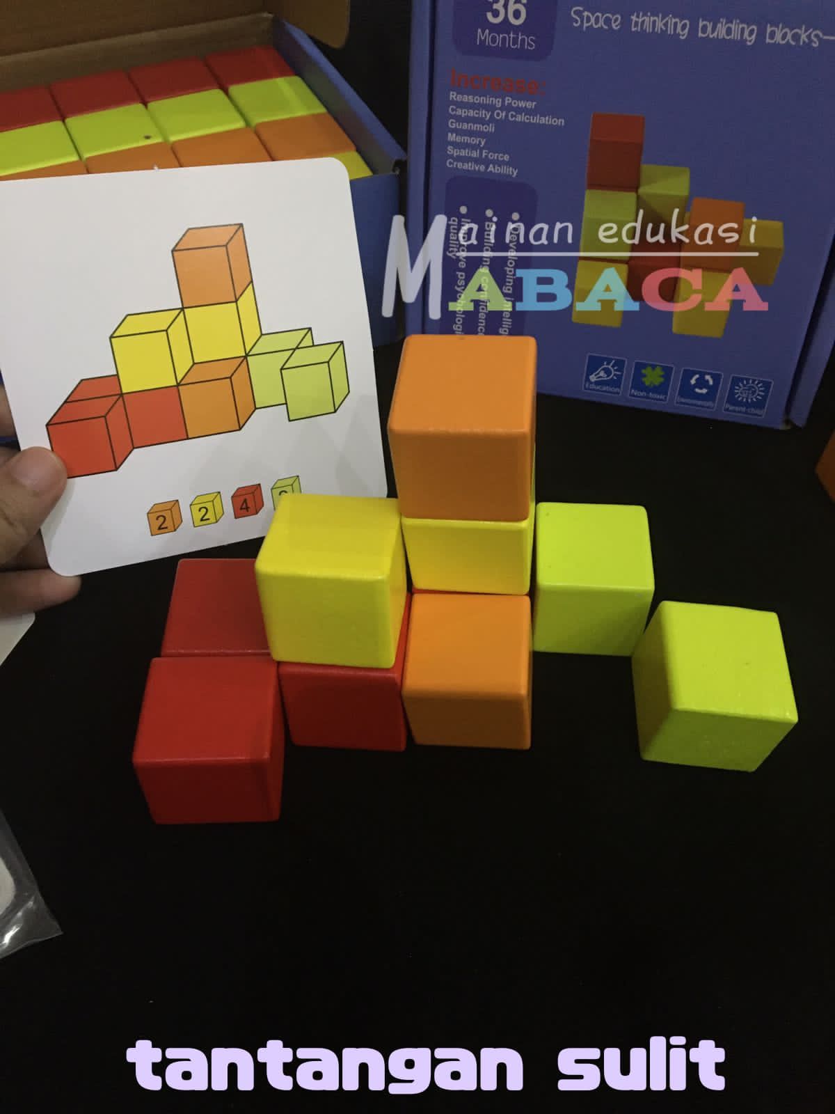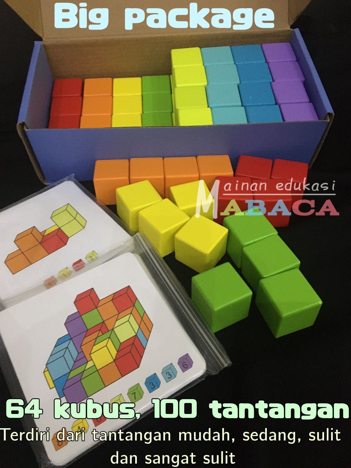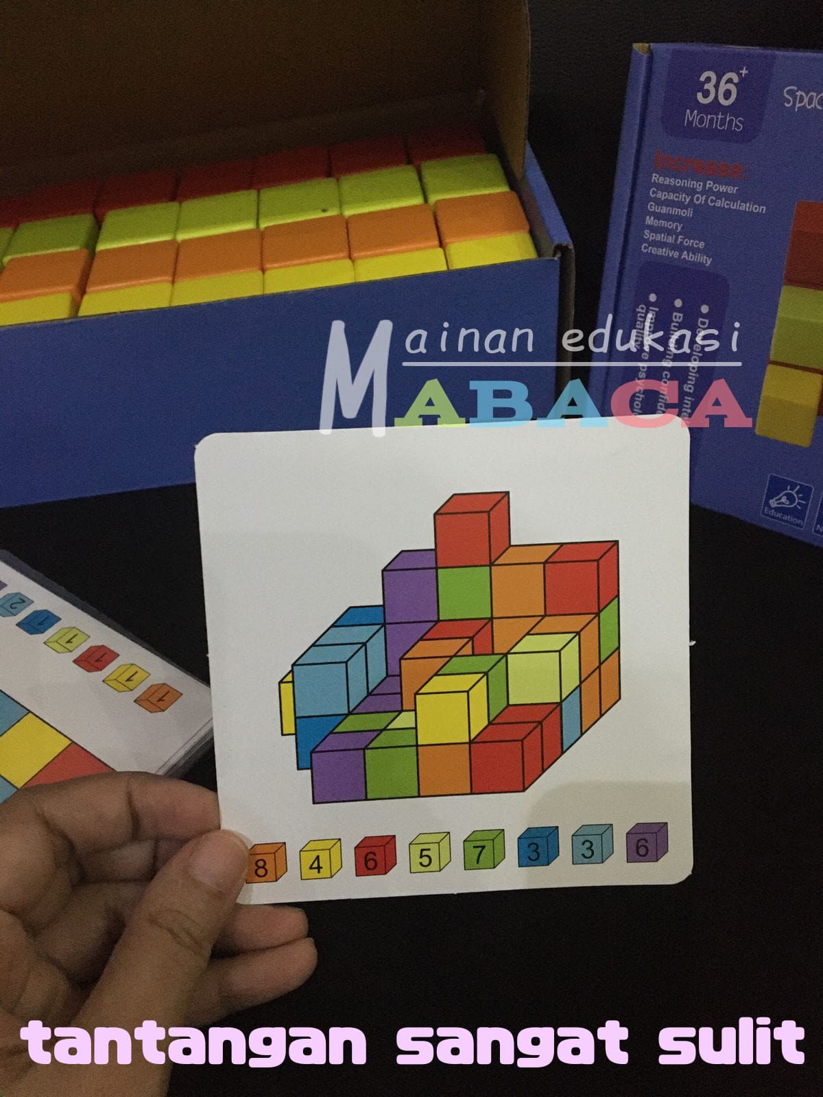 Mainan ini sangat menantang anak untuk berfikir memecahkan masalah "bangun ruang" sesuai dengan 'soal' di kartu.