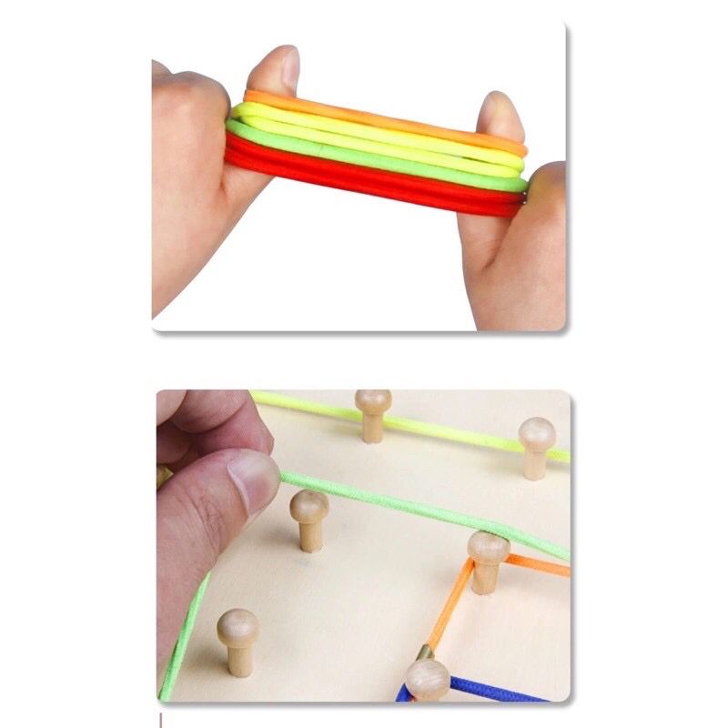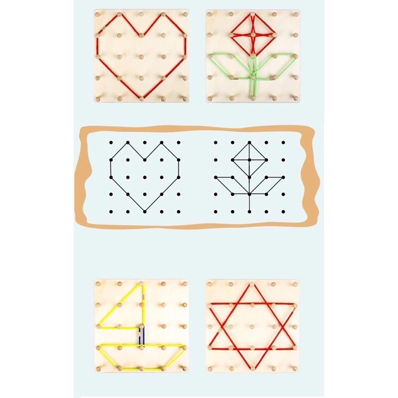 - Melatih kemampuan motorik anak, dengan permainan menjahit dan mengikuti pola kartu pada geoboard